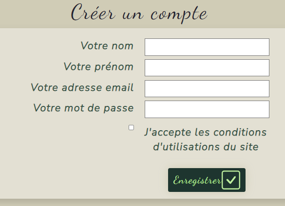 La page de création de compte permet à tout visiteur de créer un compte Client.