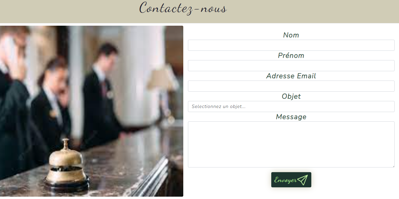 Un bouton "contactez-nous" permet d'accéder directement au formulaire depuis la barre de navigation.