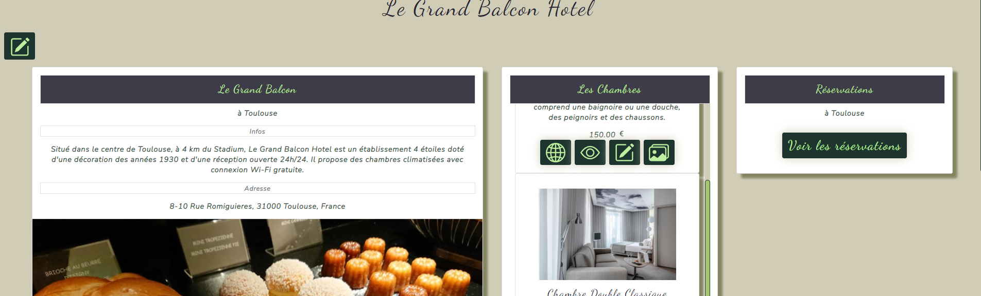 Un bouton "Mon Hôtel" apparait dans la barre de navigation des gérants connectés et permet d'accéder directement à la page d'édition de leur hôtel.