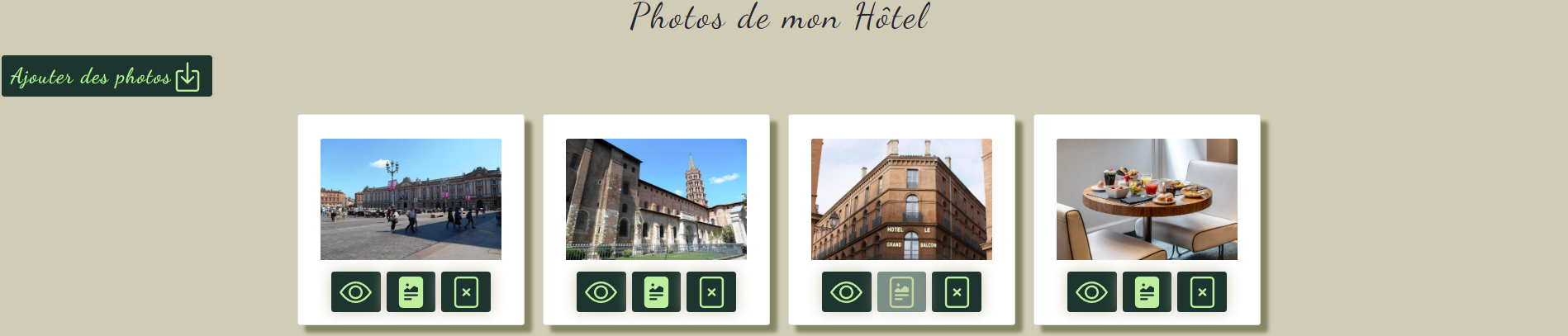 Un bouton "Photos de mon Hôtel" apparait dans la barre de navigation des gérants connectés et permet d'accéder directement à la page de gestion des photos.