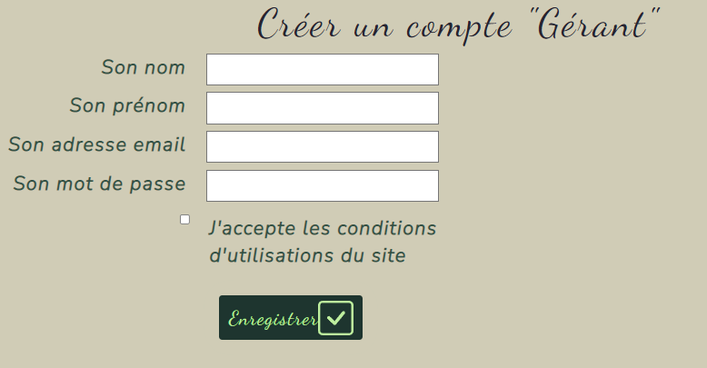 Un bouton "Ajouter un gérant" apparait dans la barre de navigation des administrateurs connectés et permet d'accéder directement à la page de création de compte gérant.