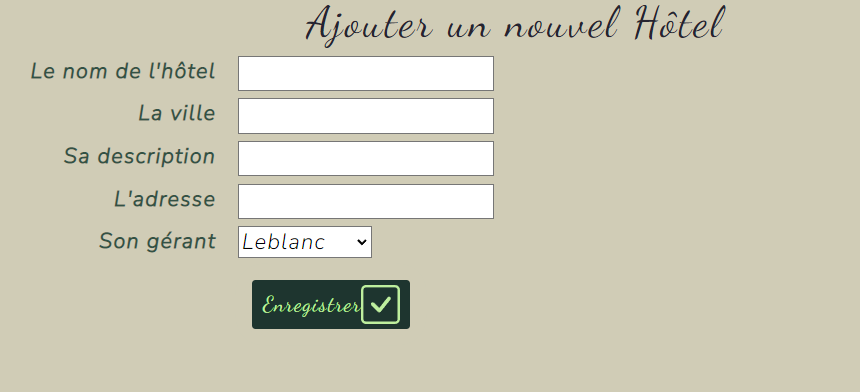 ATTENTION : Il est obligatoire d'ajouter le gérant avant de créer l'hôtel pour faciliter la liaison des deux
