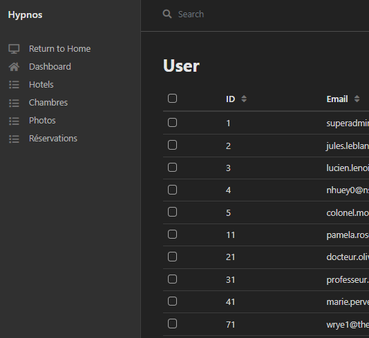 Très similaire au formulaire du compte gérant, celui-ci permet l'ajout d'Hôtel et de ses informations, ainsi que de lui attribuer un gérant.