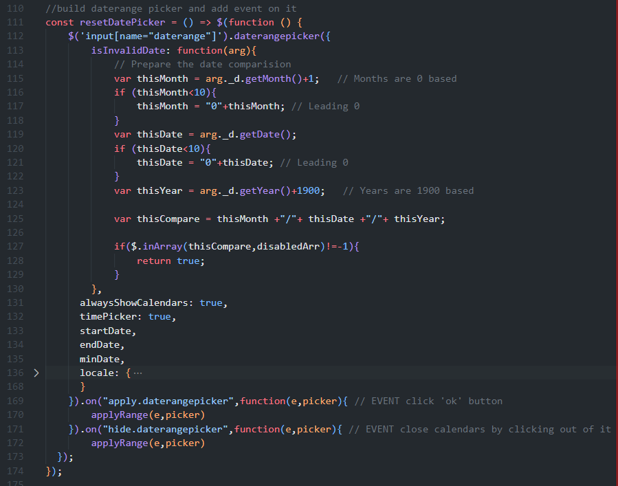 HTML 5/Twig, CSS 3, Bootstrap.css, daterangepicker.css, Bootstrap.bundle.js, JavaScript, jQuery, Moment.js, daterangepicker.js