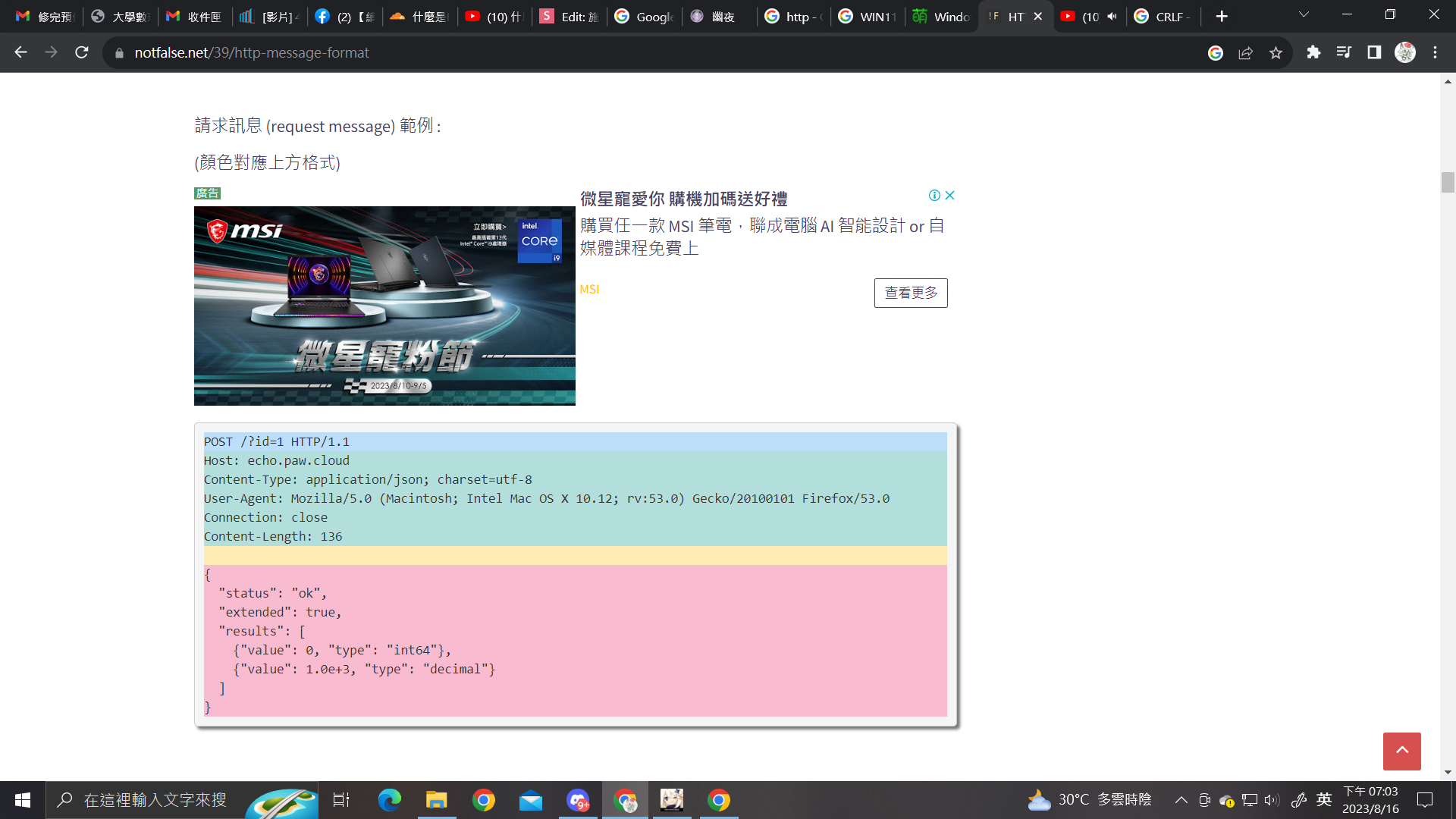 - 右邊是收到的response