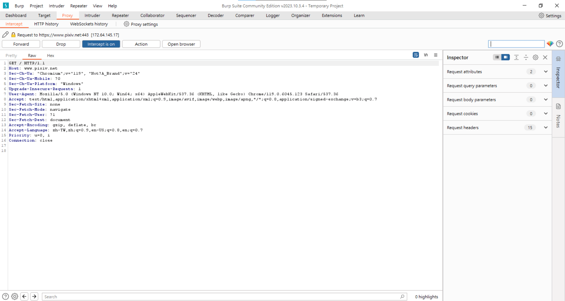 打開一個瀏覽器,burpsuite會擷取這個瀏覽器的request