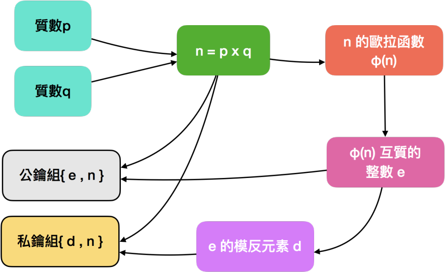 e: 65537- 根據(e*d)%φ(N)=1想要求出d(私鑰),需先求得φ(N)。