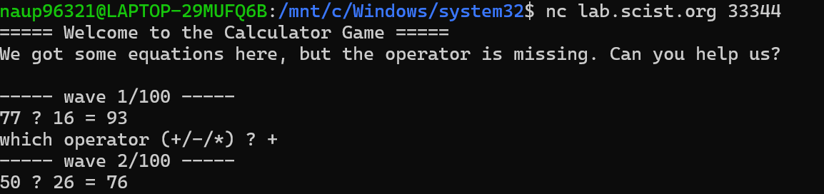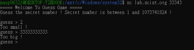 r.interactive()或是使用pwntools連上lab.scist.org 33340