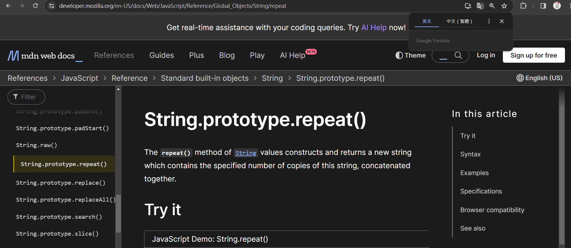 去MDN看一下發現他寫 String.prototype.repeat