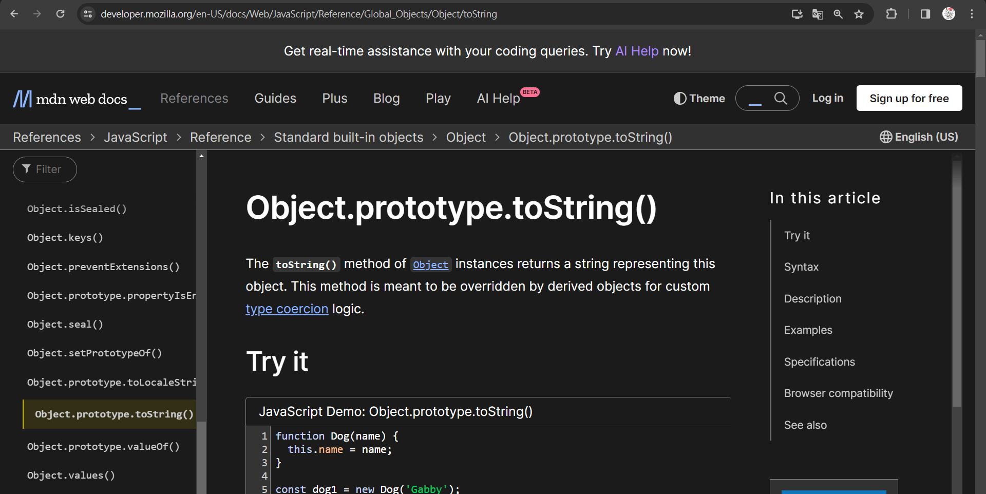 console.log(obj.toString) // ƒ toString() { [native code] }