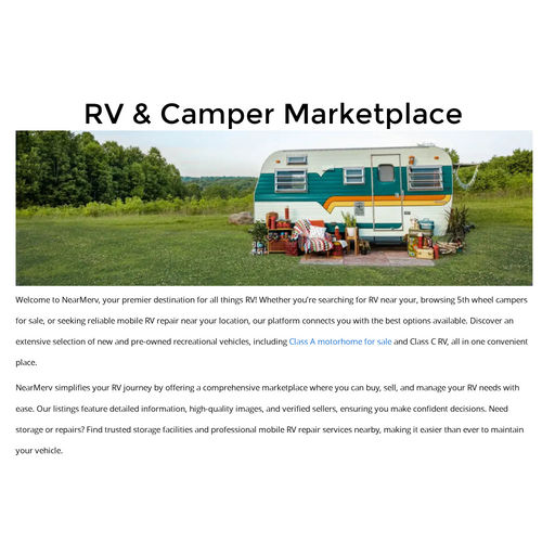 Quickly search for RVs near you, 5th wheel campers, or Class A and C motorhomes all in one place. Connect with trusted sellers and service providers for a stress-free experience.