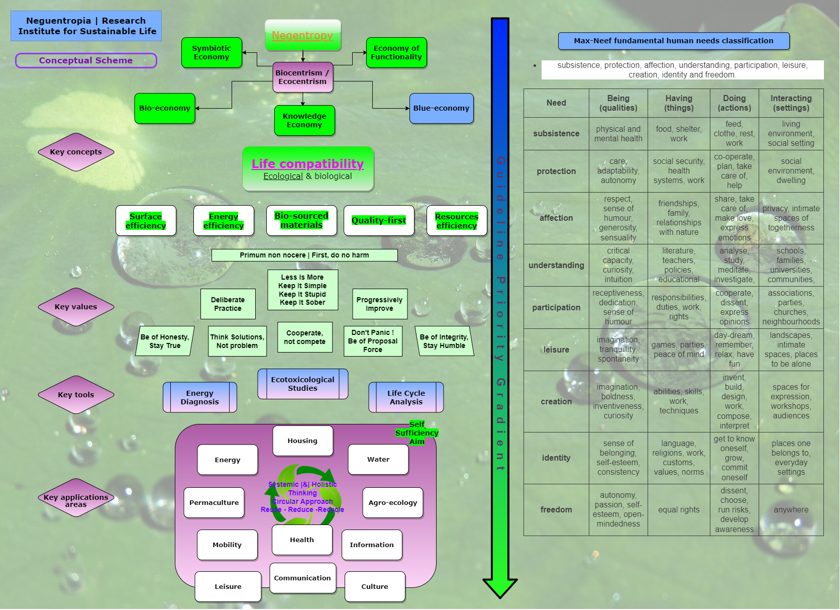 Il s’agit d’amorcer un virage majeur dans les savoirs et comportements, tout en améliorant la qualité de vie, toujours dans un souci constant de compatibilité harmonieuse avec le vivant, même lorsqu’il est recouru à des sciences et/ou technologies avancées.