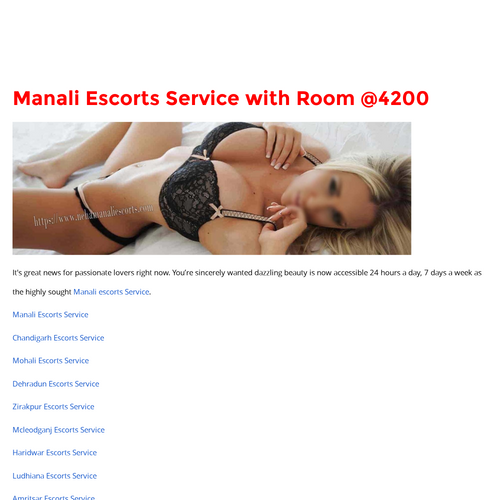 It's great news for passionate lovers right now. You’re sincerely wanted dazzling beauty is now accessible 24 hours a day, 7 days a week as the highly sought Manali escorts Service.