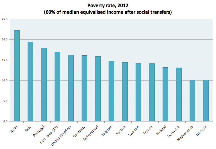 - In Europe, relative poverty is more common: a net income less than 60% national median