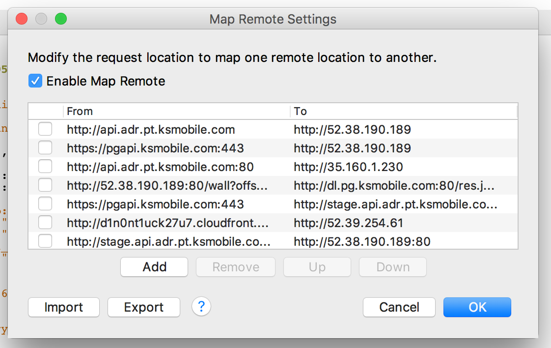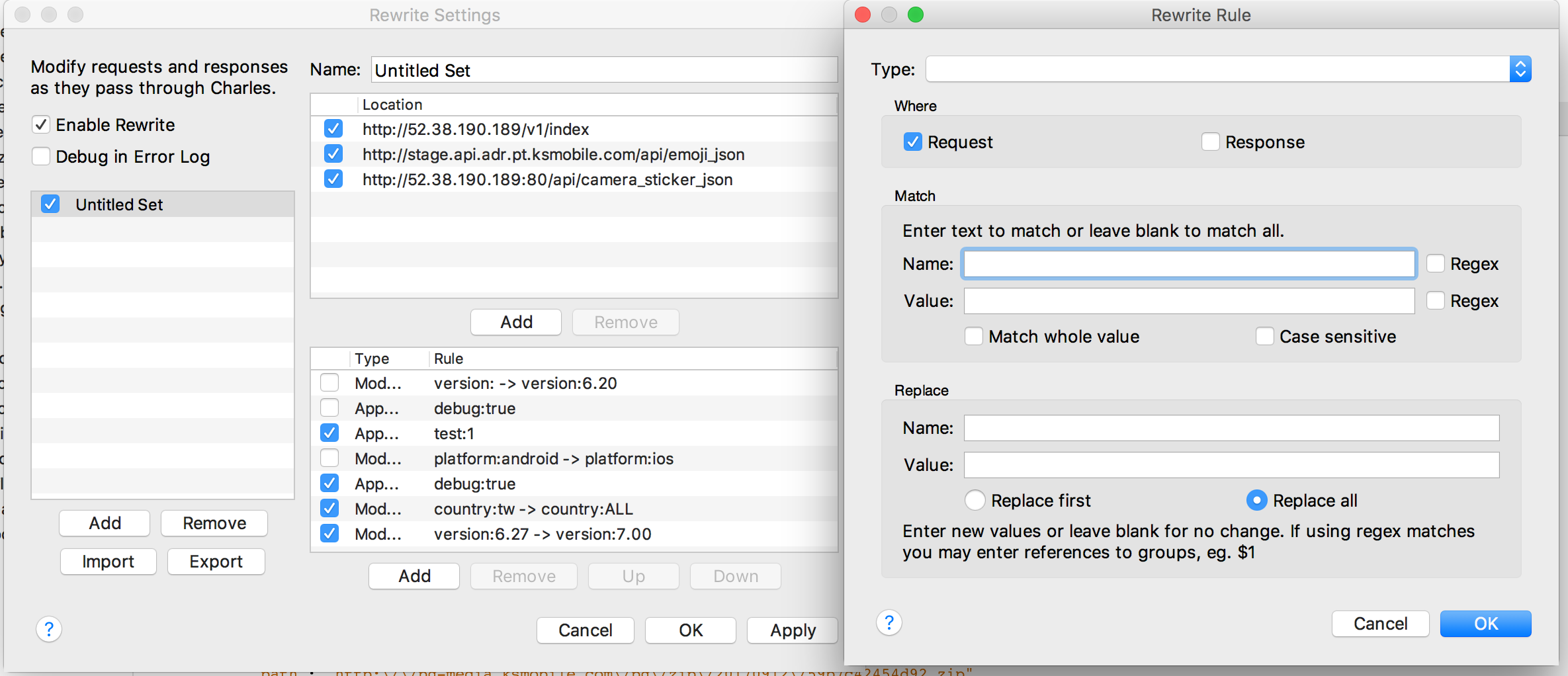 Charles is an HTTP proxy / HTTP monitor / Reverse Proxy that enables a developer to view all of the HTTP and SSL / HTTPS traffic between their machine and the Internet.