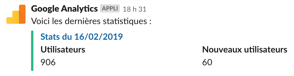 ->content('Voici les dernières statistiques :')