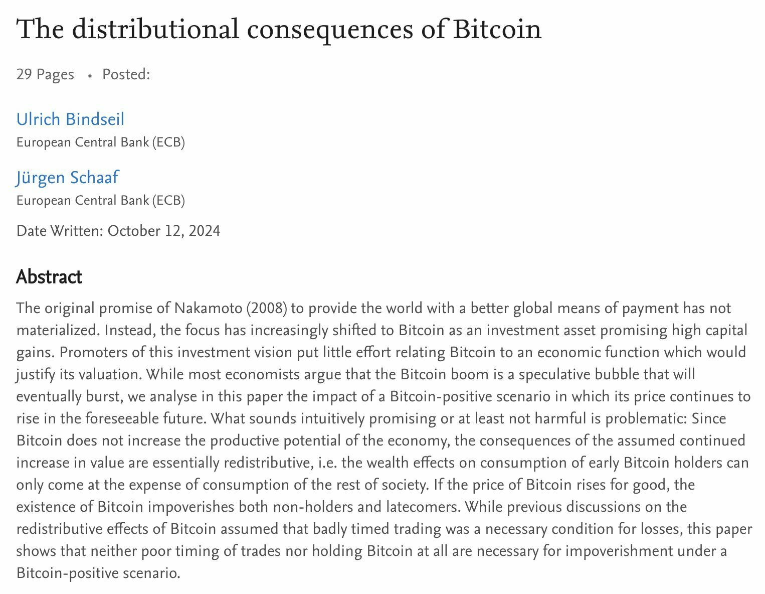 This new paper is a true declaration of war: the ECB claims that early #bitcoin adopters steal economic value from latecomers. I strongly believe authorities will use this luddite argument to enact harsh taxes or bans.