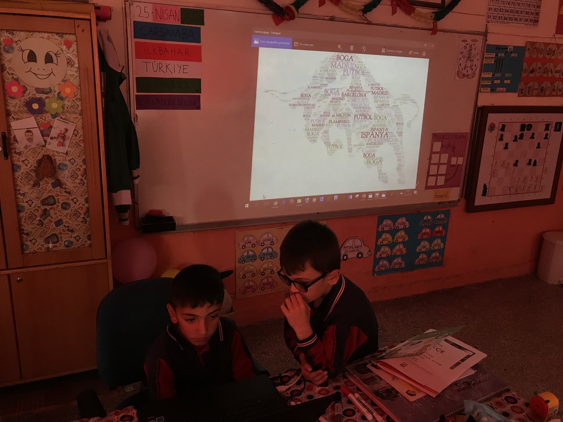 İspanya slaytını izleyip. İspanya'yı tanıyıp, notlar aldılar.