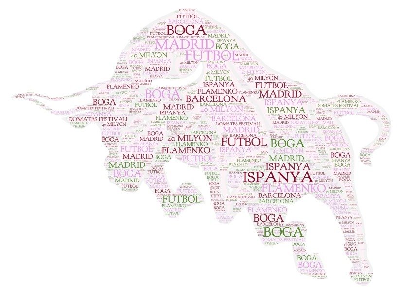 Wordart ile İspanya ünlü boğası ile eşleştirdik.