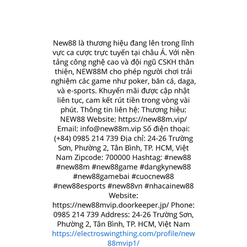 Website: https://new88mvip.doorkeeper.jp/ New88 là thương hiệu đang lên trong lĩnh vực ca cược trực tuyến tại châu Á. Với nền tảng công nghệ cao và đội ngũ CSKH thân thiện, NEW88M cho phép người chơi trải nghiệm các game như poker, băn cá, daga, và e