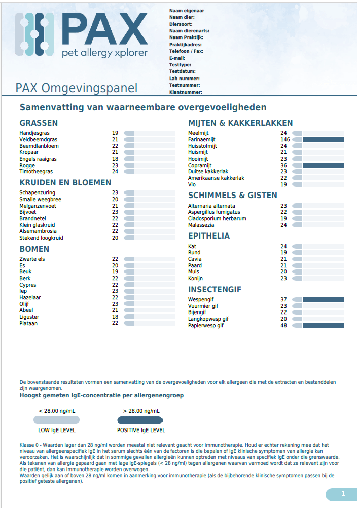 Pet Allergy Xplorer (PAX) is de eerste commerciële serologische IgE-specifieke test die allergeenextracten en moleculaire componenten gebruikt om vast te stellen welke
