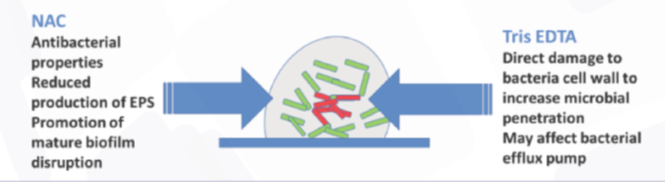 Ethyleendiaminetetra-azijnzuur (EDTA) heeft een antibacteriële werking in combinatie met tromethamine (Tris).