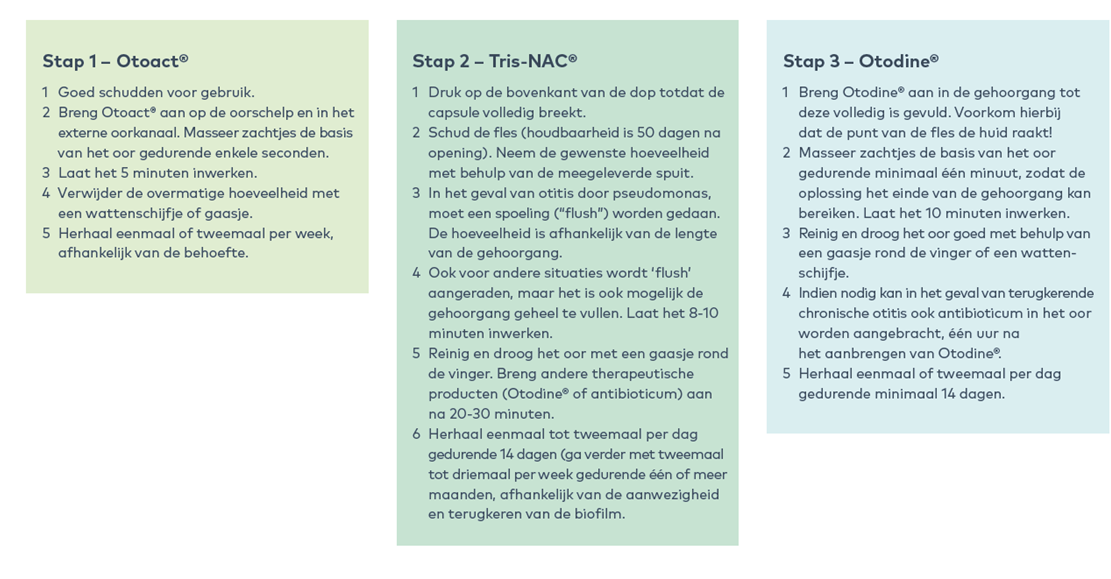 Otoact®, Tris-NAC® and Otodine® zijn niet ototoxisch en kunnen worden gebruikt wanneer het trommelvlies is beschadigd.