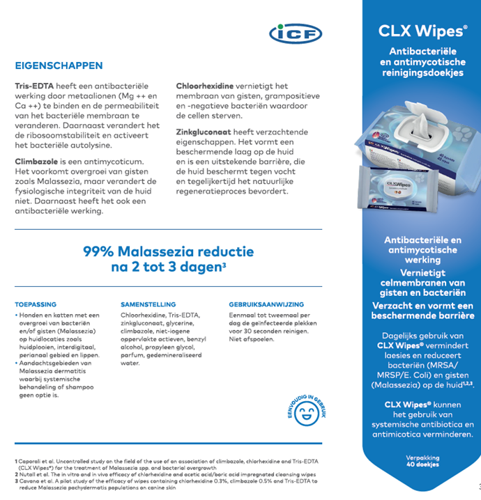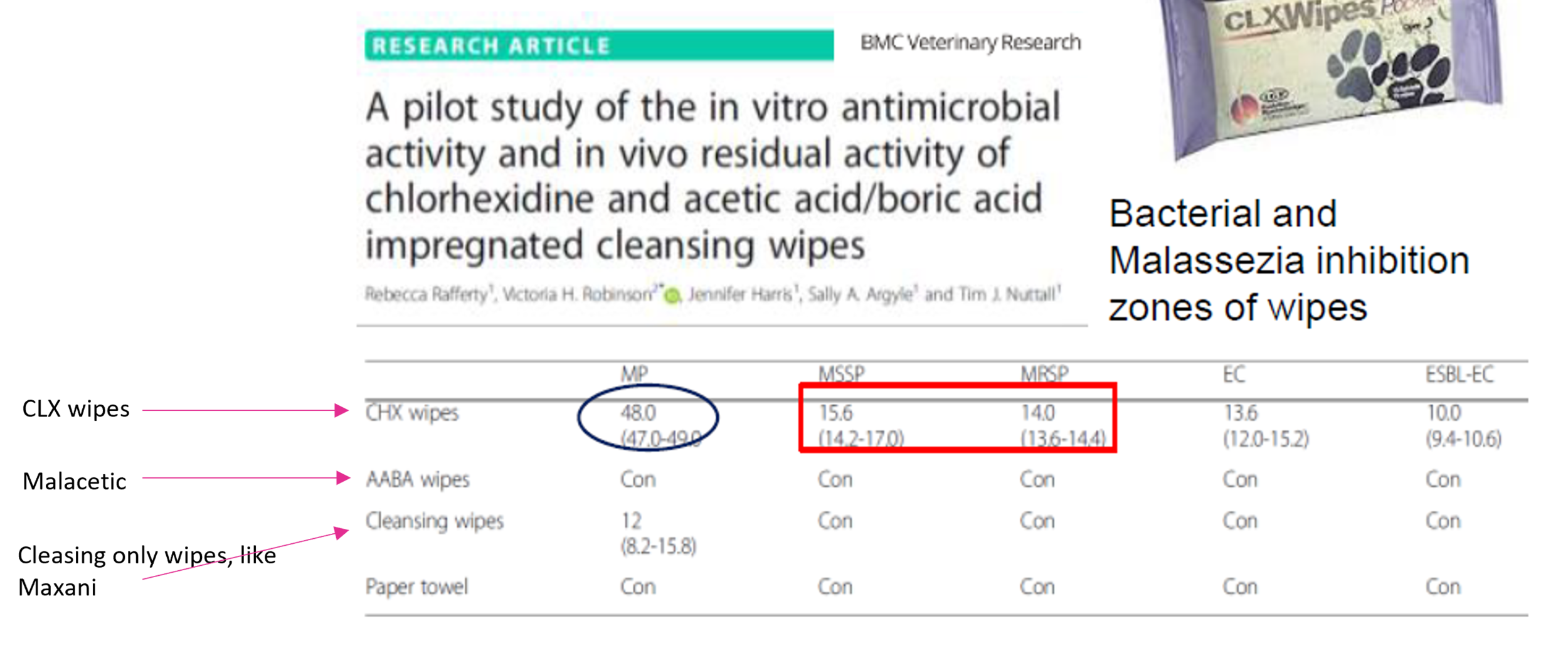 1. A pilot study of the efficacy of wipes containing chlorhexidine, climbazole and Tris-EDTA to reduce Malassezia Pachydermatis populations on canine skin.