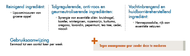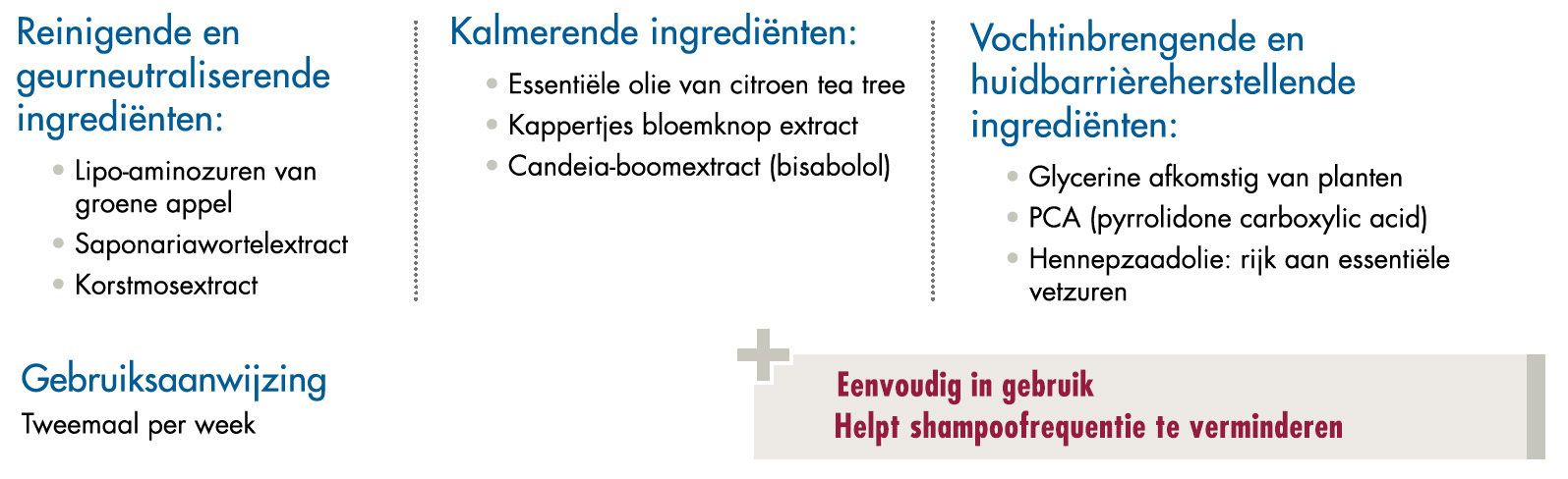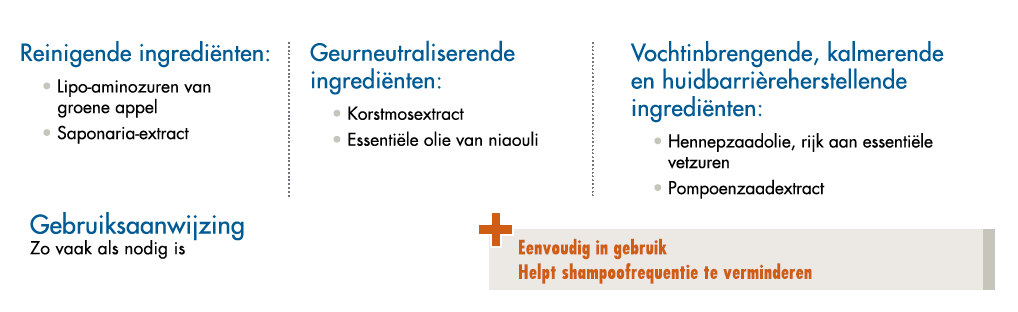 Shampoo met zachte peeling: verwijdert dode huidcellen.