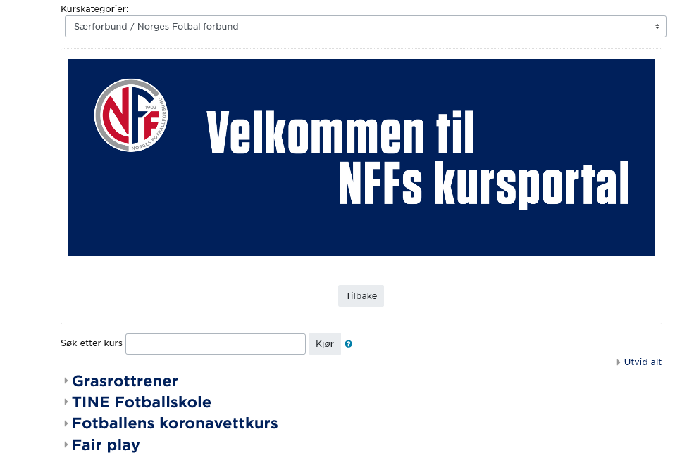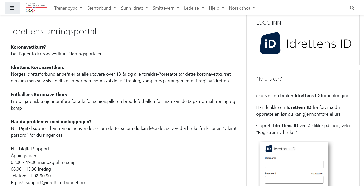 Nå er du inne på kurset. Du finner igjen kurset ved å gå til "Mine kurs" eller via "Særforbund" i nedtrekksmenyen.