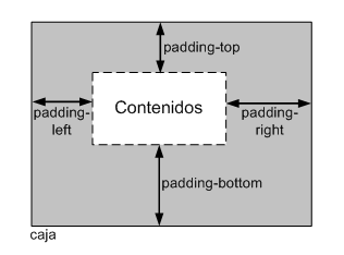 CSS define cuatro propiedades para controlar cada uno de los margenes de relleno horizontales y verticales de un elemento.