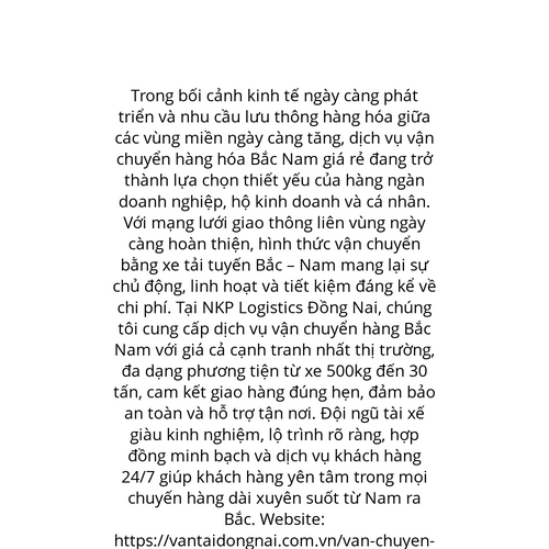 Website: https://vantaidongnai.com.vn/van-chuyen-hang-hoa-bac-nam-gia-re/ Trong bối cảnh kinh tế ngày càng phát triển và nhu cầu lưu thông hàng hóa giữa các vùng miền ngày càng tăng, dịch vụ vận chuyển hàng hóa Bắc Nam giá rẻ đang trở thành lựa chọn