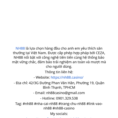 NH88 là lựa chọn hàng đầu cho anh em yêu thích săn thưởng tại Việt Nam. Được cấp phép hợp pháp bởi CEZA, NH88 nổi bật với công nghệ tiên tiến - Website: https://nh88.casino/