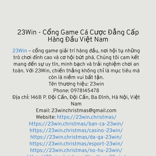 23Win – cổng game giải trí hàng đầu, nơi hội tụ những trò chơi đỉnh cao và cơ hội bứt phá. Chúng tôi cam kết mang đến sự uy tín, minh bạch và trải nghiệm chơi an toàn. Website: https://23win.christmas/