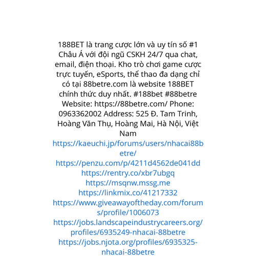 Website: https://88betre.com/ 188BET là trang cược lớn và uy tín số #1 Châu Á với đội ngũ CSKH 24/7 qua chat, email, điện thoại. Kho trò chơi game cược trực tuyến, eSports, thể thao đa dạng chỉ có tại 88betre.com là website 188BET chính thức duy nhất