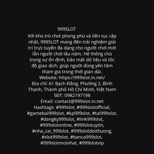 Với kho trò chơi phong phú và liên tục cập nhật, 999SLOT mang đến trải nghiệm giải trí trực tuyến đa dạng cho người chơi mới lẫn người chơi lâu năm. Hệ thống chú trọng sự ổn định, bảo mật dữ liệu và tốc độ giao dịch, giúp người dùng yên tâm tham gia