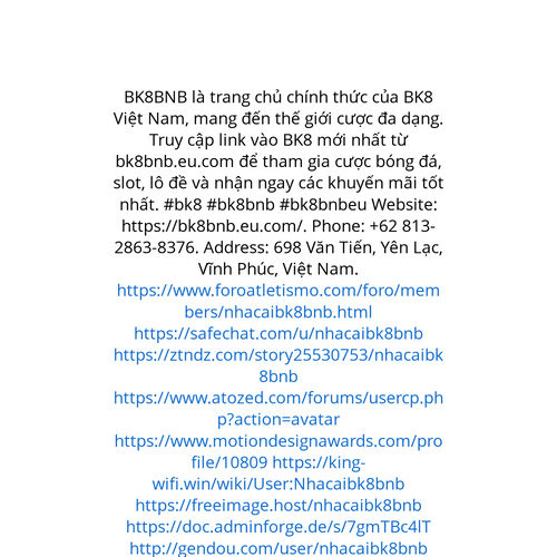 Website: https://bk8bnb.eu.com/. BK8BNB là trang chủ chính thức của BK8 Việt Nam, mang đến thế giới cược đa dạng. Truy cập link vào BK8 mới nhất từ bk8bnb.eu.com để tham gia cược bóng đá, slot, lô đề và nhận ngay các khuyến mãi tốt nhất. #bk8 #bk8bnb