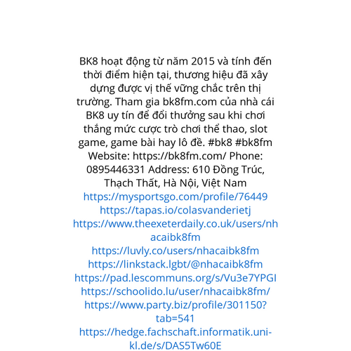 Website: https://bk8fm.com/ BK8 hoạt động từ năm 2015 và tính đến thời điểm hiện tại, thương hiệu đã xây dựng được vị thế vững chắc trên thị trường. Tham gia bk8fm.com của nhà cái BK8 uy tín để đổi thưởng sau khi chơi thắng mức cược trò chơi thể thao
