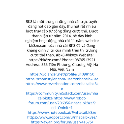 Website: https://bk8ze.com/ BK8 là một trong những nhà cái trực tuyến đang hot dạo gần đây, thu hút rất nhiều lượt truy cập từ cộng đồng cược thủ. Được thành lập từ năm 2014, bề dày kinh nghiệm hoạt động nhà cái 11 năm, website bk8ze.com của nhà cái