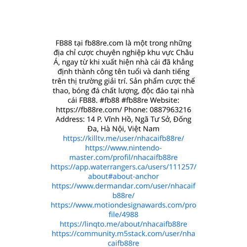 Website: https://fb88re.com/ FB88 tại fb88re.com là một trong những địa chỉ cược chuyên nghiệp khu vực Châu Á, ngay từ khi xuất hiện nhà cái đã khẳng định thành công tên tuổi và danh tiếng trên thị trường giải trí. Sản phẩm cược thể thao, bóng đá chấ