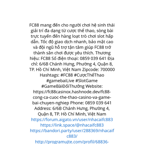 Website: https://fc88casinox.hashnode.dev/fc88-cong-ca-cuoc-the-thao-casino-va-game-bai-chuyen-nghiep FC88 mang đến cho người chơi hệ sinh thái giải trí đa dạng từ cược thể thao, sòng bài trực tuyến đến hàng loạt trò chơi slot hấp dẫn. Tốc độ giao dị