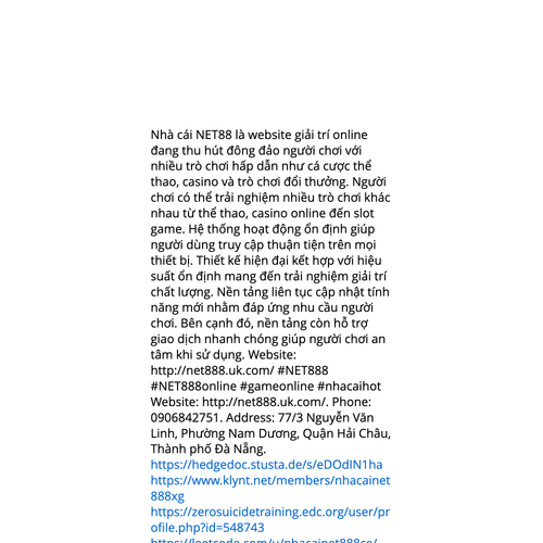 Website: http://net888.uk.com/http://net888.uk.com/ NET88 online là nền tảng giải trí trực tuyến được nhiều người quan tâm với hệ sinh thái trò chơi phong phú như thể thao, casino online và slot game. NET88 mang đến nhiều lựa chọn giải trí trực tuyến từ cá cược thể tha