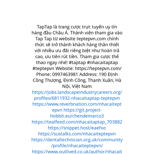 Website: https://teptepvn.com/ TapTap là trang cược trực tuyến uy tín hàng đầu Châu Á. Thành viên tham gia vào Tap Tap từ website teptepvn.com chính thức sẽ trở thành khách hàng thân thiết với nhiều ưu đãi riêng biệt như hoàn trả cao, ưu tiên rút tiề