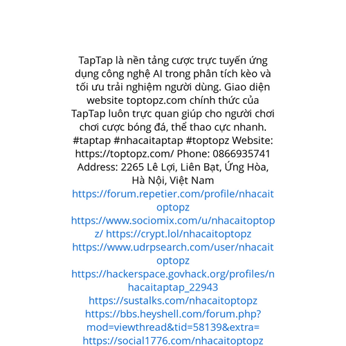 Website: https://toptopz.com/ TapTap là nền tảng cược trực tuyến ứng dụng công nghệ AI trong phân tích kèo và tối ưu trải nghiệm người dùng. Giao diện website toptopz.com chính thức của TapTap luôn trực quan giúp cho người chơi chơi cược bóng đá, thể