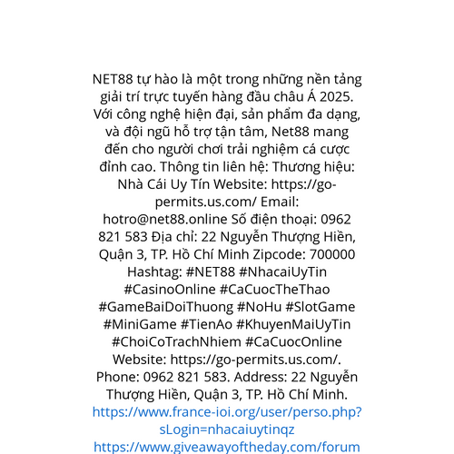 Website: https://go-permits.us.com/. NET88 tự hào là một trong những nền tảng giải trí trực tuyến hàng đầu châu Á 2025. Với công nghệ hiện đại, sản phẩm đa dạng, và đội ngũ hỗ trợ tận tâm, Net88 mang đến cho người chơi trải nghiệm cá cược đỉnh cao. T