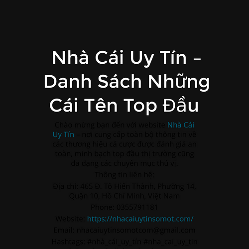 Chào mừng bạn đến với website Nhà Cái Uy Tín – nơi cung cấp toàn bộ thông tin về các thương hiệu cá cược được đánh giá an toàn, minh bạch top đầu thị trường cũng đa dạng các chuyên mục thú vị. Thông tin liên hệ: https://nhacaiuytinsomot.com/