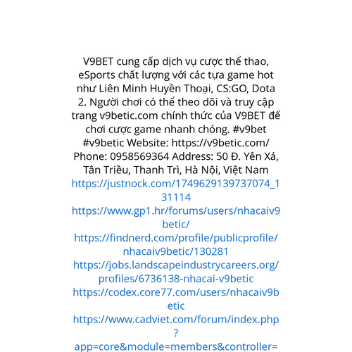 Website: https://v9betic.com/ V9BET cung cấp dịch vụ cược thể thao, eSports chất lượng với các tựa game hot như Liên Minh Huyền Thoại, CS:GO, Dota 2. Người chơi có thể theo dõi và truy cập trang v9betic.com chính thức của V9BET để chơi cược game nhan