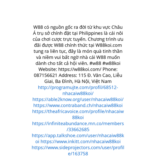 Website: https://w88koi.com/ W88 có nguồn gốc ra đời từ khu vực Châu Á trụ sở chính đặt tại Philippines là cái nôi của chơi cược trực tuyến. Chương trình ưu đãi được W88 chính thức tại W88koi.com tung ra liên tục, đây là món quà tinh thần và niềm vui
