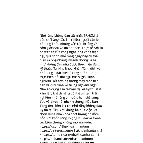 Website: https://nhakhoanhantam.com/nho-rang/goi-y-dia-chi-nho-rang-khon-uy-tin-tai-tphcm-1723.html Nhổ răng không đau tốt nhất TP.HCM là tiêu chí hàng đầu khi nhiều người cần loại bỏ răng khôn nhưng vẫn còn lo lắng về cảm giác đau và độ an toàn. Thự