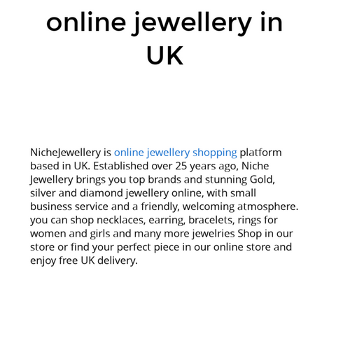 NicheJewellery is online jewellery shopping platform based in UK. Established over 25 years ago, Niche Jewellery brings you top brands and stunning Gold, silver and diamond jewellery online, with small business service and a friendly, welcoming atmos